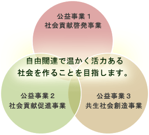 より豊かで温かい社会を形成するために、誰も排除されることなく、社会の一員としてすべての人が社会参加できる機会を提供し、精神的・経済的に自立した生活の実現を支援する事業です。
