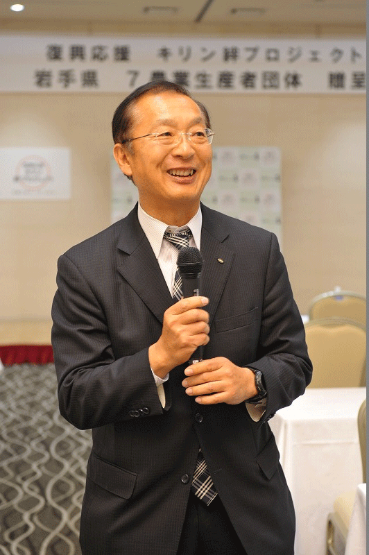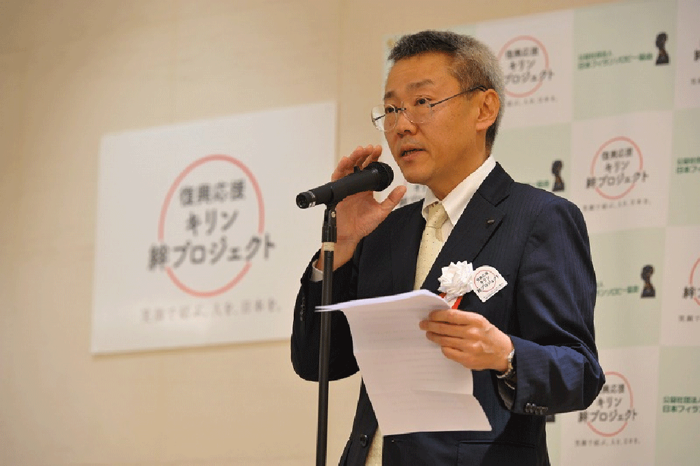 皆さまとは、(2013年5月の)ヒアリングの時にお目にかかって以来だと思います。この「復興応援キリン絆プロジェクト」はその名の通り「地域の絆」「一人ひとりの絆」「日本人としての絆」を強めるためのプロジェクトでございます。