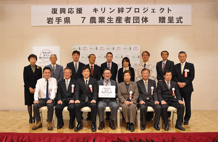 私どもキリングループでは東日本大震災で被災された東北地方の復興に向けて「復興応援キリン絆プロジェクト」という取り組みを展開しております。このプロジェクトでは3年間で約60億円を拠出して、主に3つのテーマに、取り組んでまいります。1つ目は「地域食文化・食産業の復興支援」、2つ目は「子どもたちの笑顔づくり支援」、3つ目が「心と体の元気サポート」。この3つを中心に取り組んでおります。