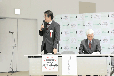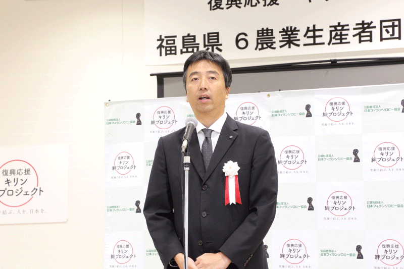 私は震災の年の秋に福島に参りました。私自身は大阪の生まれですが、家内が三春町の出身で福島とは20数年のお付き合いがあります。今後もいろいろなところで皆さまの活動と接点が生まれてくると思います。「絆」として、これからも今まで以上にキリンビールの商品をご愛飲いただきたいと思いますし、私たちも皆さまの活動を見届けていきたいと思います。