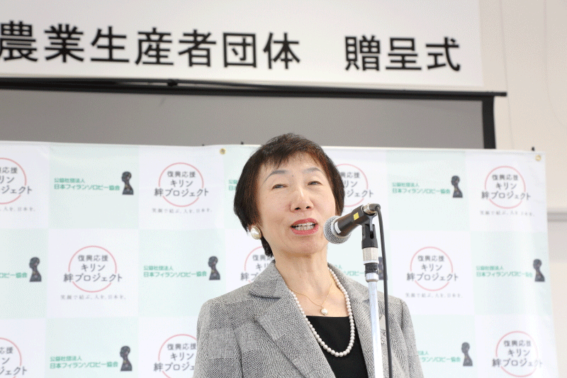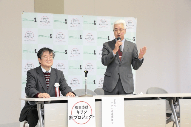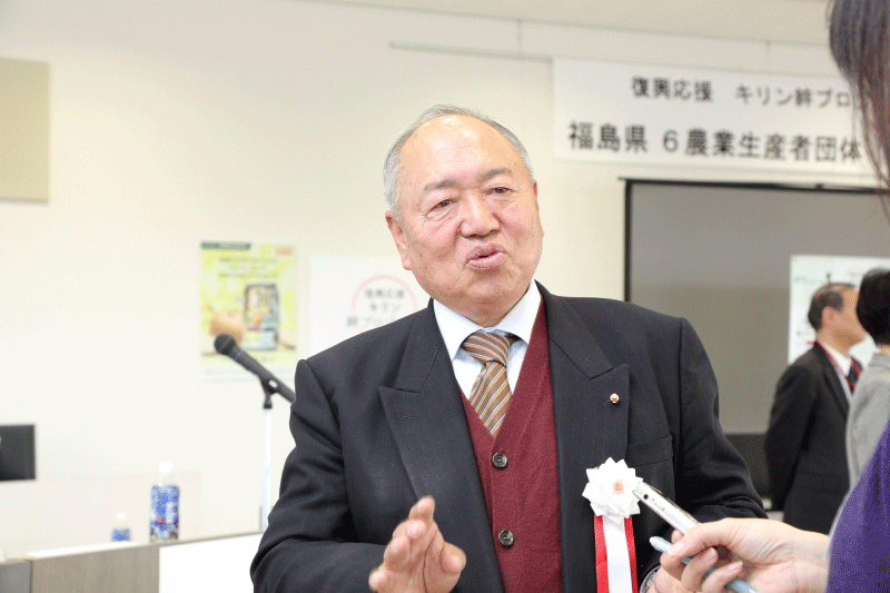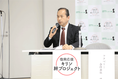 弊社としましては、商品をただ販売するだけでなく、生産の現場から皆さまの食卓までのつながりを大事にしたいと思っております。復興応援キリン絆プロジェクト第2ステージでは、たくさんの方の笑顔のために進めていることも多数ございますが、本日このような形で6つの団体の皆様が新たなステージに向かうための一端を担うことが出来たことを大変喜んでおります。