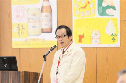 キリンビール様からは、キリン絆プロジェクトを通じて、女川ブランディングプロジェクトにご支援をいただいています。きょうはまた、工場内に女川町を紹介するブースまで作っていただき、本当に感謝です。