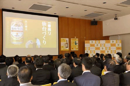 宮城のDNAというべきササニシキを使ったビールで、宮城のおいしさをたくさんの方にお届けしたい、そして、仙台工場92年の歴史と、震災からの再稼働にお力をいただいた東北の皆様への感謝の気持ちを込めて、私どもも復興を応援してまいります。