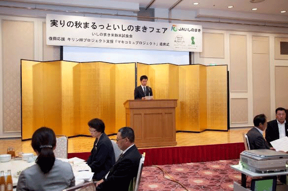 フェアでは今秋石巻地区で収穫されたばかりの「ササニシキ」「ひとめぼれ」「つや姫」の新米三種の食べ比べが行われるとともに、「復興応援 キリン絆プロジェクト」農業支援 の助成金の一部を使用して活動をスタートした「マキコミュプロジェクト(通称 マキプロ)」の進発式も行われた。生産者、飲食業者、加工業者、JAや行政関係者らが、プロジェクトのスタートを祝ってエールを交換した。