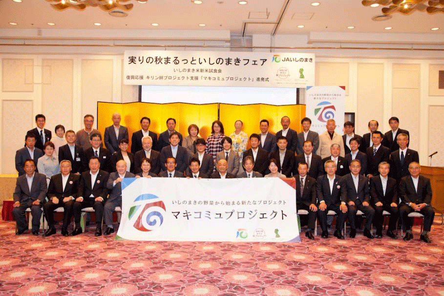 いしのまき農業協同組合では、「復興応援 キリン絆プロジェクト」農業支援事業の第1ステージのサポートに続き、農産品のブランド育成を進めるため第2ステージの支援も賜り、マキコミュプロジェクトを立ち上げました。地域の農漁業者、飲食業者、加工業者、行政機関といった異業種の方々を連携パートナーとして巻き込んで行きたいと考えます。