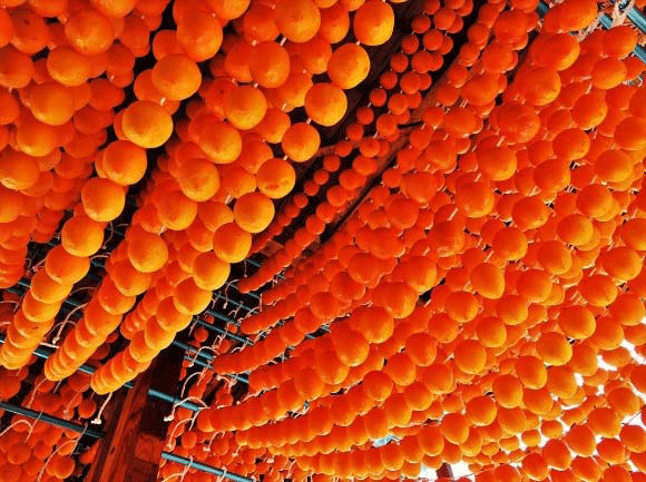 地域には約25万本の柿の木があり、約900軒の生産農家は柿の実を丁寧に切り取り、一つずつ皮を剥いて実が触れあわぬように吊るし、風通しのいい小屋などで約1カ月間干す。天然の甘みが凝縮され、とろりと柔らかく、上品な和菓子のような味わいが特徴である。