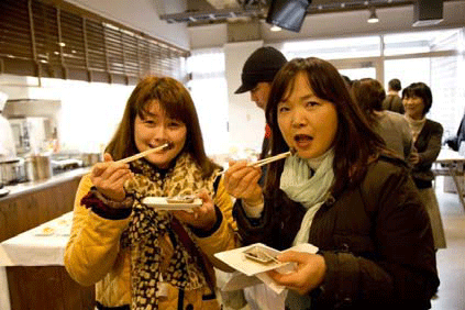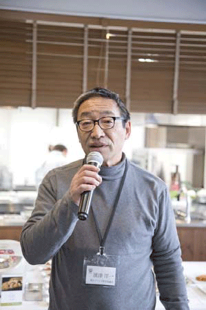 マイクを手にした鹿野先生は、一品ずつ説明し、そして「本日の商談会が、郡山ブランド野菜を、皆様にもっとお使いいただく契機になりますよう願っております」と挨拶。流れてくるおいしい匂いに、会場の雰囲気も和んだ。