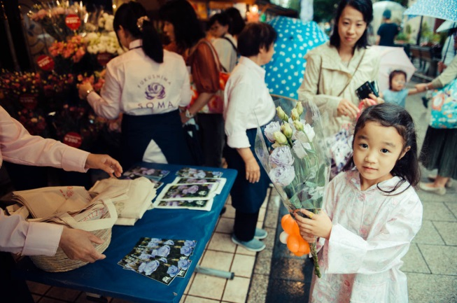 平成28年(2016年)7月9日、生産部会のメンバーとJAふくしま未来のスタッフからなる11名は、東京・自由が丘にあるフラワーショップ「モンソーフルール」の店頭で、南相馬産トルコギキョウの販売促進イベントを実施。この日、南相馬から東京に運ばれたトルコギキョウは8種類で240束(480本)。白や紫、ピンクなどの花を付けたトルコギキョウが並べられ、スタッフたちは「福島県南相馬市で育ったトルコギキョウです」「丹精込めて育てています」と道行く人にアピールした。また、花を購入してくれたお客様には、併せて南相馬市産の福島県オリジナル米「天のつぶ」(300g)をプレゼントした。