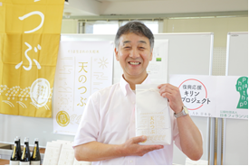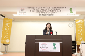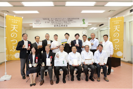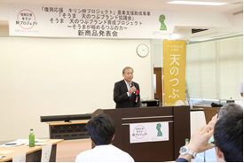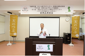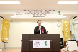 昨秋(2015年)、「天のつぶブランド育成プロジェクト」への支援を発表させていただきました。この間、協議会の皆様は、試食会などで消費者の生の声を集めたり、新商品候補の試作などを行い、そして本日を迎えられました。